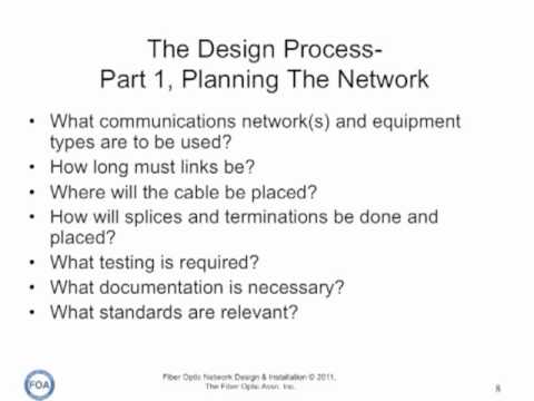 FOA Lecture 9: Fiber Optic Network Design, Part 1 - Foa Reference Guide To Fiber Optics Pdf - This is the 9th lecture in the FOA series on fiber optics. This lecture introduces the process of designing a fiber optic network and talks about what is involved in ...