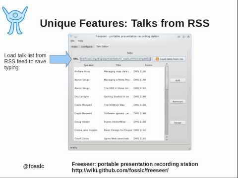 Demo video - free video capture utility (Freeseer v1.9.5) - Freeseer Download - This short demo video showcases the free video capture utility, Freeseer. Freeseer is designed for screen casting and capturing presentations. It captures from a ...
