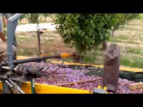 Cosecha mecanizada, ciruela d Agen, Chile. - Cosechadora De Ciruelas - En el video se observa como trabaja un par de máquinas cosecheras, dos tractores con autocargables uno de los cuales abastece de bins vacíos y el otro va ...